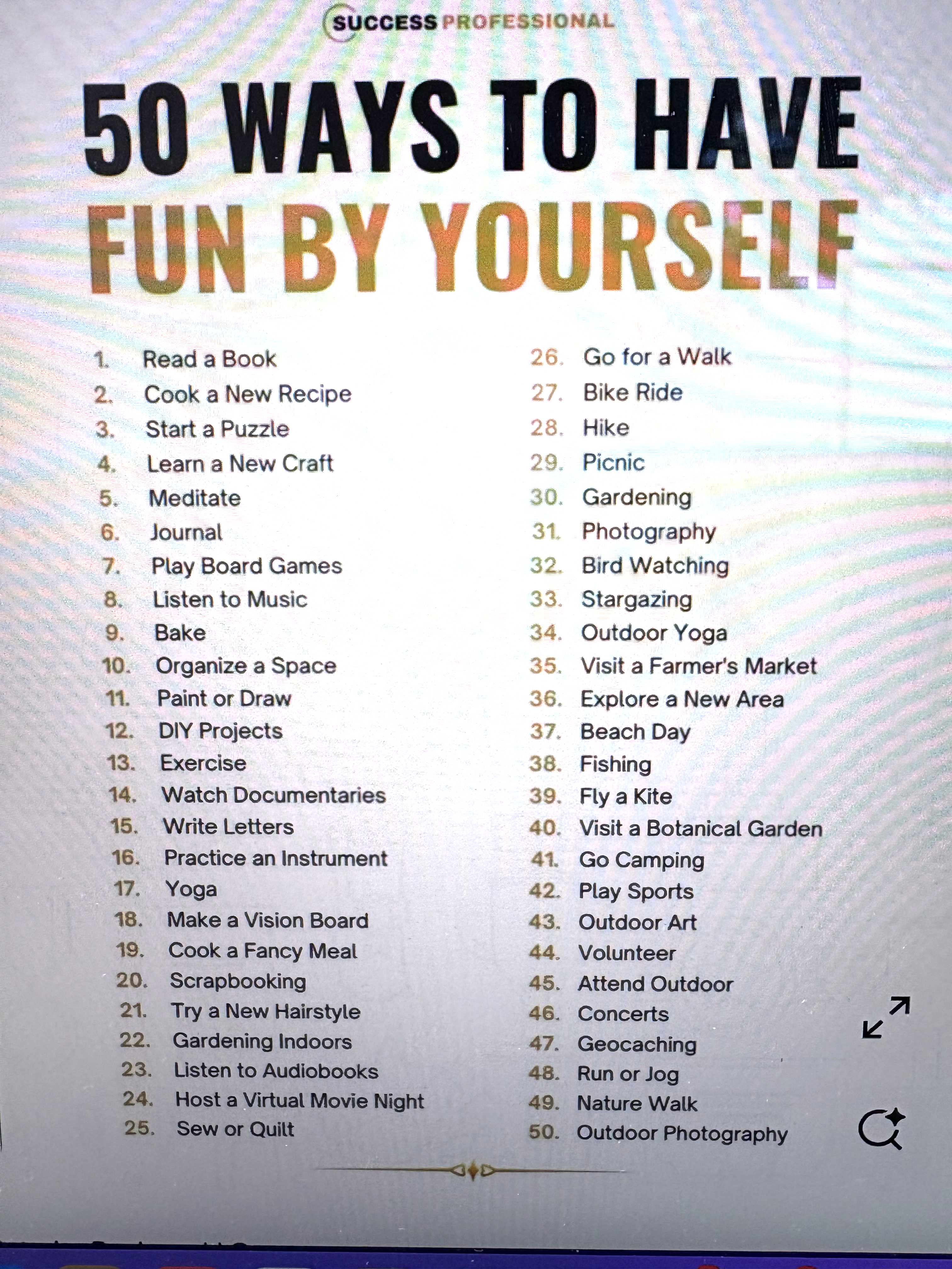 If you wrote your own "Things To Do For Fun" list, please bring it.
